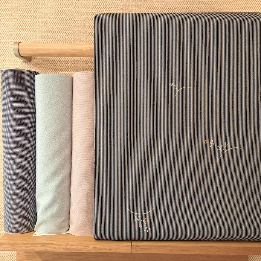 他に伊勢木綿以外にも 東レシルックやストレッチ長襦袢、羽織の反物なども持って参りますね♪